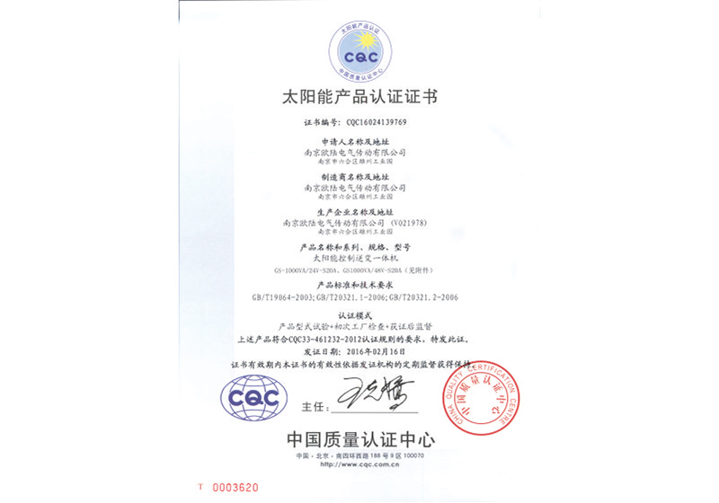 • 太陽能產(chǎn)品認(rèn)證證書