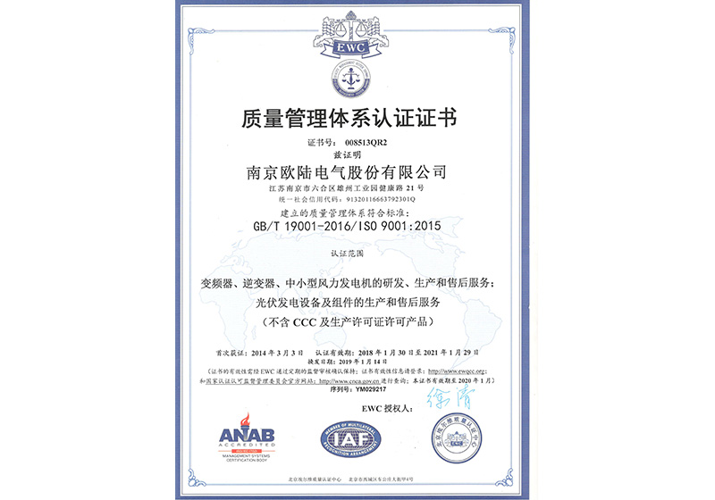 • 質(zhì)量管理體系認(rèn)證證書
