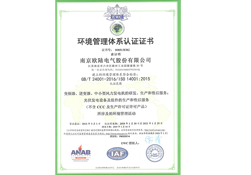 • 環(huán)境管理體系認(rèn)證證書