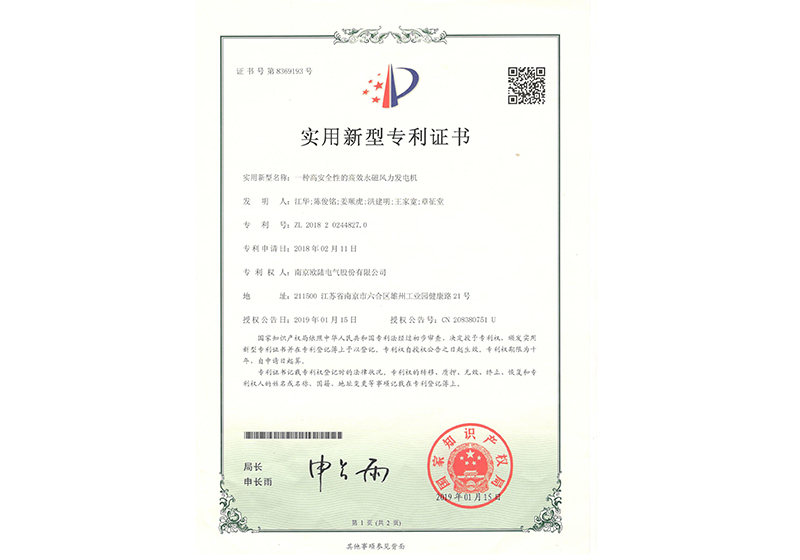 • 一種高安全性的高效永磁風(fēng)力發(fā)電機(jī)